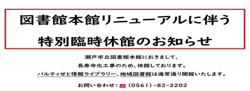 - 瀬戸市立図書館利用についてのアンケート調査実施のお知らせ (受付終了)