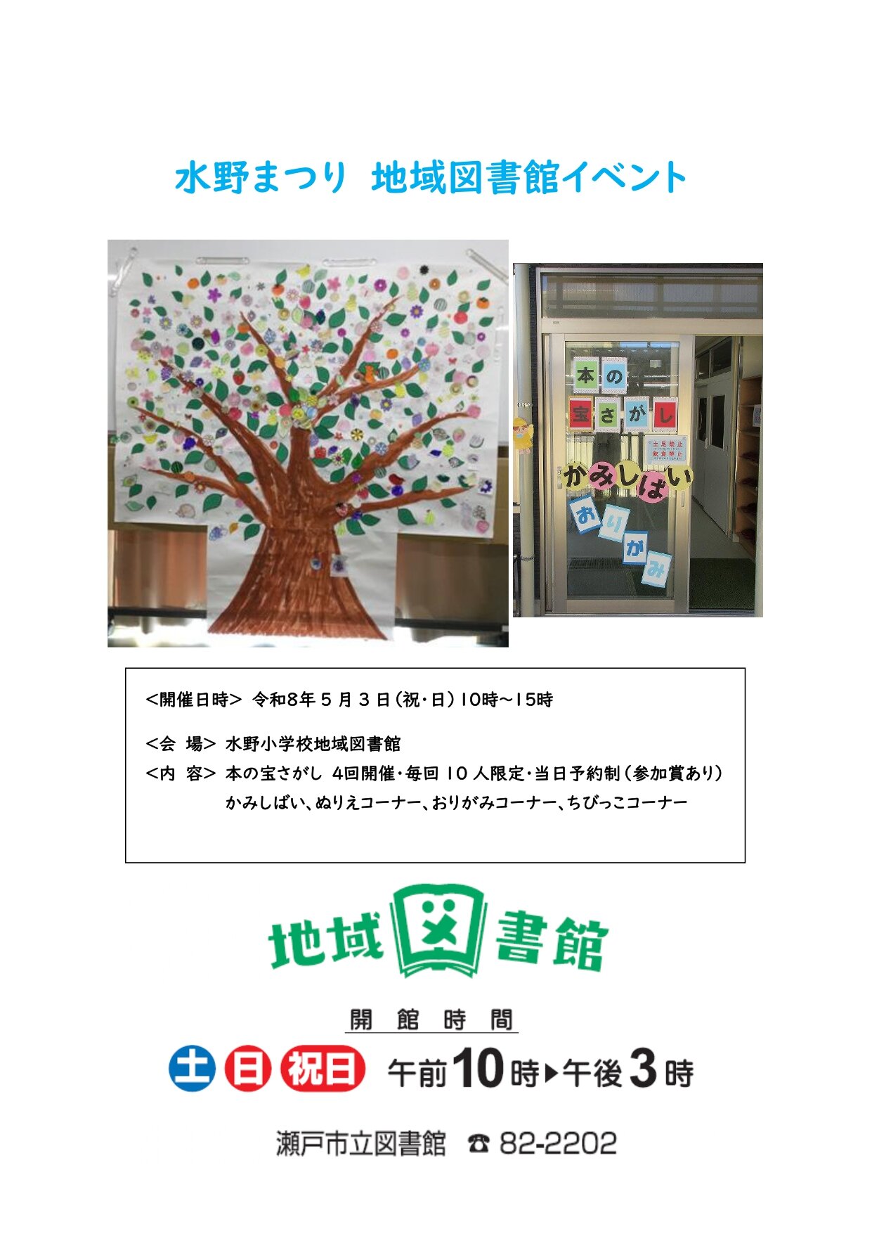 新着情報> 水野まつり 地域図書館イベント(申込不要・直接会場へ)